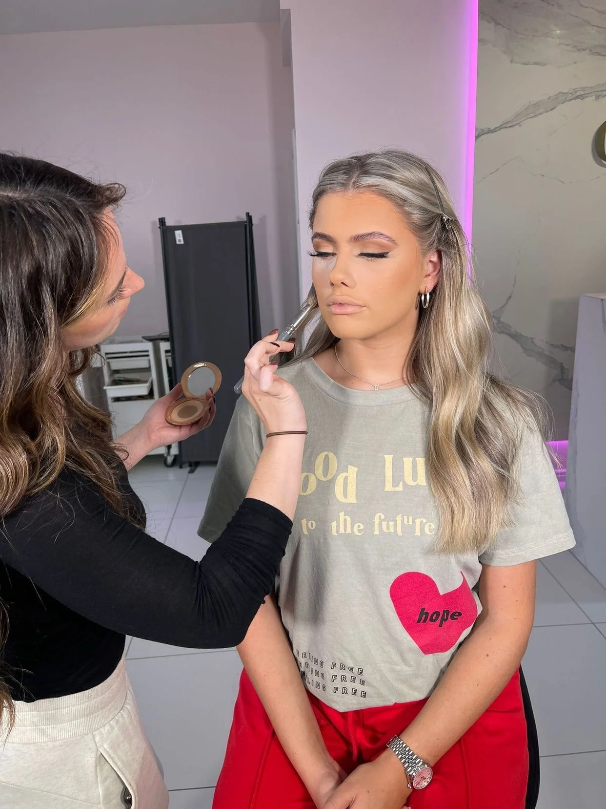 There is something about making my client feel the most beautiful version of themselves and giving unwavering confidence on such an important day that is so special to me. Being sat in my chair being that moment of calm, reminding you to eat something, to take your flowers out of water, even helping with your veil and your dress. My team and I are more than just your hair and make up artists, we’re extra support, extra laughs, extra candid picture takers before your photographers arrive.